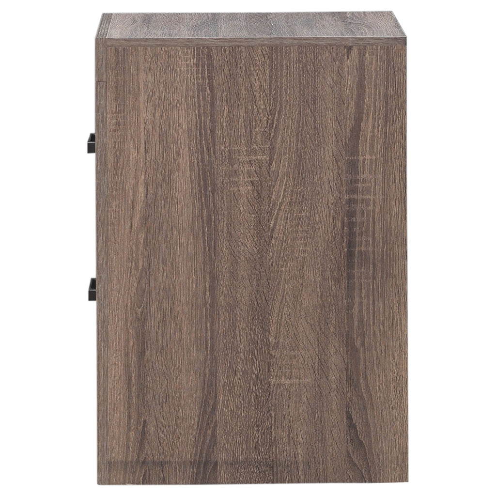 This two-drawer nightstand brings modern style and practical storage to the bedside. Its clean-lined frame complements contemporary spaces, while two spacious drawers provide room for nighttime essentials. Dark bronze handles contrast beautifully against the engineered wood construction and durable laminate veneer. Designed for everyday use, this nightstand offers both style and function in a compact footprint.