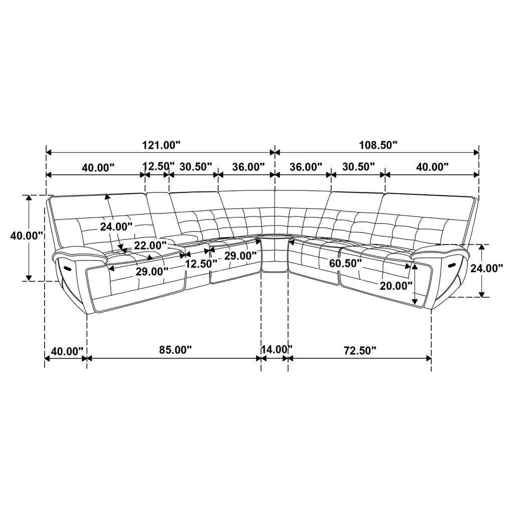 Experience ultimate luxury and relaxation with this three-piece dual power sectional sofa, crafted with top grain black leather that exudes elegance and durability. The contrast stitching and modern grid tufting design add a touch of sophistication, highlighting the luxurious material. The dual power functionality with power recline and power headrests offers customizable comfort, allowing you to adjust the position of the sectional to your liking with ease. The sectional includes a modern console that combines functionality with convenience, featuring hidden cup rests with removable stainless steel cup holders, a soft-close storage compartment, a USB-C charging port, and a wireless charger. Recline fully and find your perfect angle for ultimate relaxation with this beautifully designed sectional. Key Features: • Crafted with top grain black leather for elegance and durability • Contrast stitching and modern grid tufting design add sophistication • Dual power feature, with power recline and power headrest, for customizable comfort • Modern console with hidden cup rests, removable stainless steel cup holders, soft-close storage, USB-C charging port, and wireless charger • Perfect for ultimate relaxation and stylish living spaces