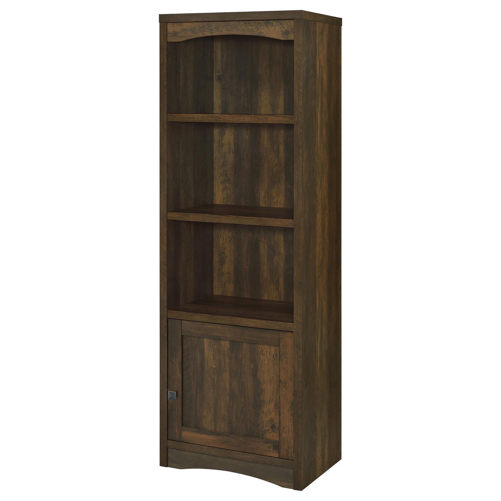 Put finishing touches on a charming media center in your living room with this tower bookcase. Perfect to flank your TV stand, it adds easy storage and display space. Its mix of cabinet and open shelving is versatile and stylish, with three shelves, two of them adjustable, on top of a one-door cabinet with one adjustable shelf. Trim details add subtle character and freshness to the overall look. A neutral finish complements surrounding decor and offers stylish appeal in your living room.