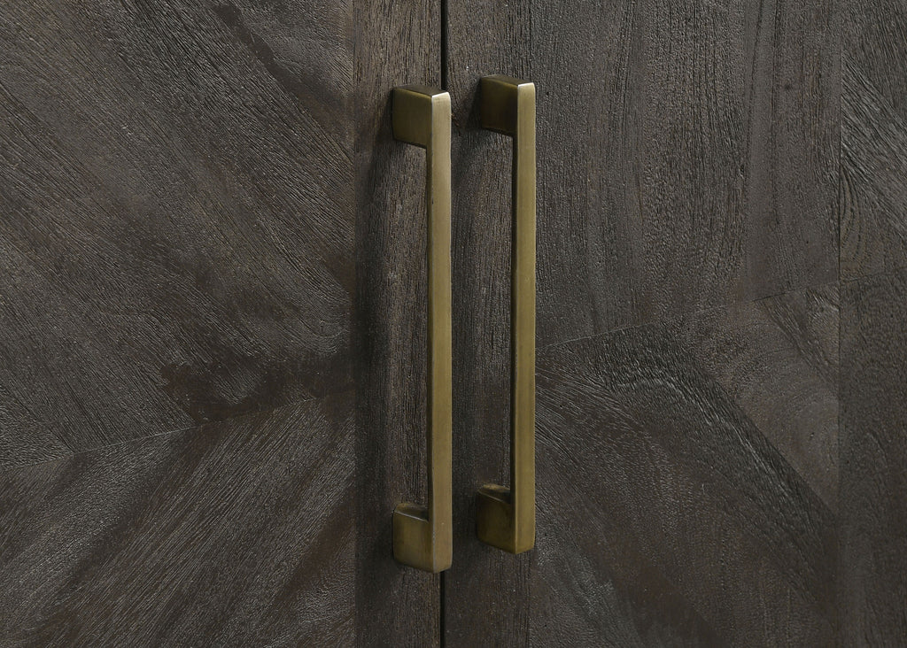 Take entertaining to the next level with the impressive style and storage presented in this contemporary server. Three doors open to reveal interiors shelving to house all manner of serve ware, linens, and other necessities. Door fronts are beautifully crafted with wood grain used to create a subtle checkerboard pattern that creates artisan flair within your living or dining room. Distinctive handles are tall and bold, adding both dimension and elegance to the server. Its top is a gorgeous slab of white marble, offering luxury and sophistication in any setting. Key Features: • Take entertaining to the next level with the impressive style and storage presented in this contemporary server • Three doors open to reveal interiors shelving to house all manner of serve ware, linens, and other necessities • Door fronts are beautifully crafted with wood grain used to create a subtle checkerboard pattern that creates artisan flair within your living or dining room • Distinctive handles are tall and bold, adding both dimension and elegance to the server • Its top is a gorgeous slab of white marble, offering luxury and sophistication in any setting