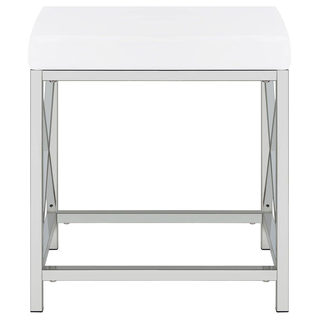 Elevate your morning rituals with a compact, contemporary vanity set, including table, mirror and stool. Perfect for makeup and hair, the vanity shows off a bright white finish with a large drawer for stashing your daily necessities. On top, a lighted mirror adds Hollywood glamour while providing bright illumination so you can see every detail as you get ready for everything from running errands to a girl's night out. The desk is accompanied by a backless stool, providing an easy spot to sit as you prepare for the day. The stool features a base with X-shaped braces to match the desk and includes a white faux leather seat with lovely padding that starts your day on the right foot. Key Features: • Bright white finish with a large drawer for stashing your daily necessities • Lighted mirror adds Hollywood glamour while providing bright illumination • Desk is accompanied by a backless stool with X-shaped braces and a white faux leather seat with lovely padding • Compact and contemporary design perfect for makeup and hair • Easy to assemble and maintain for long-lasting use