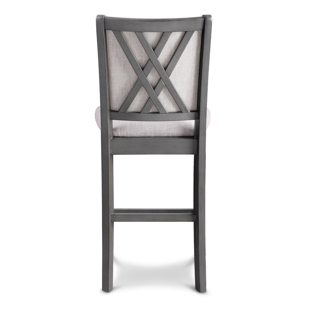 The Amy counter chair is designed to bring a perfect blend of durability, comfort, and style to your dining room. Included in this set are two counter chairs along with all the necessary hardware and assembly instructions for effortless setup. Crafted from solid Rubberwood, these chairs embody both the long-lasting and the inherent beauty of wood construction. The resilient and attractive upholstery features 100% polyester light gray fabric, covering the seat and back cushions for a comfortable and lasting seating experience. Supported by solid wood legs reinforced with base stretchers that cleverly double as footrests, these counter chairs are built to last. The stylish design elements, including tapered legs, double X-back wood detail, weathered edges, and plush cushions, create a relaxing and distinctive chair that seamlessly complements your dining space.