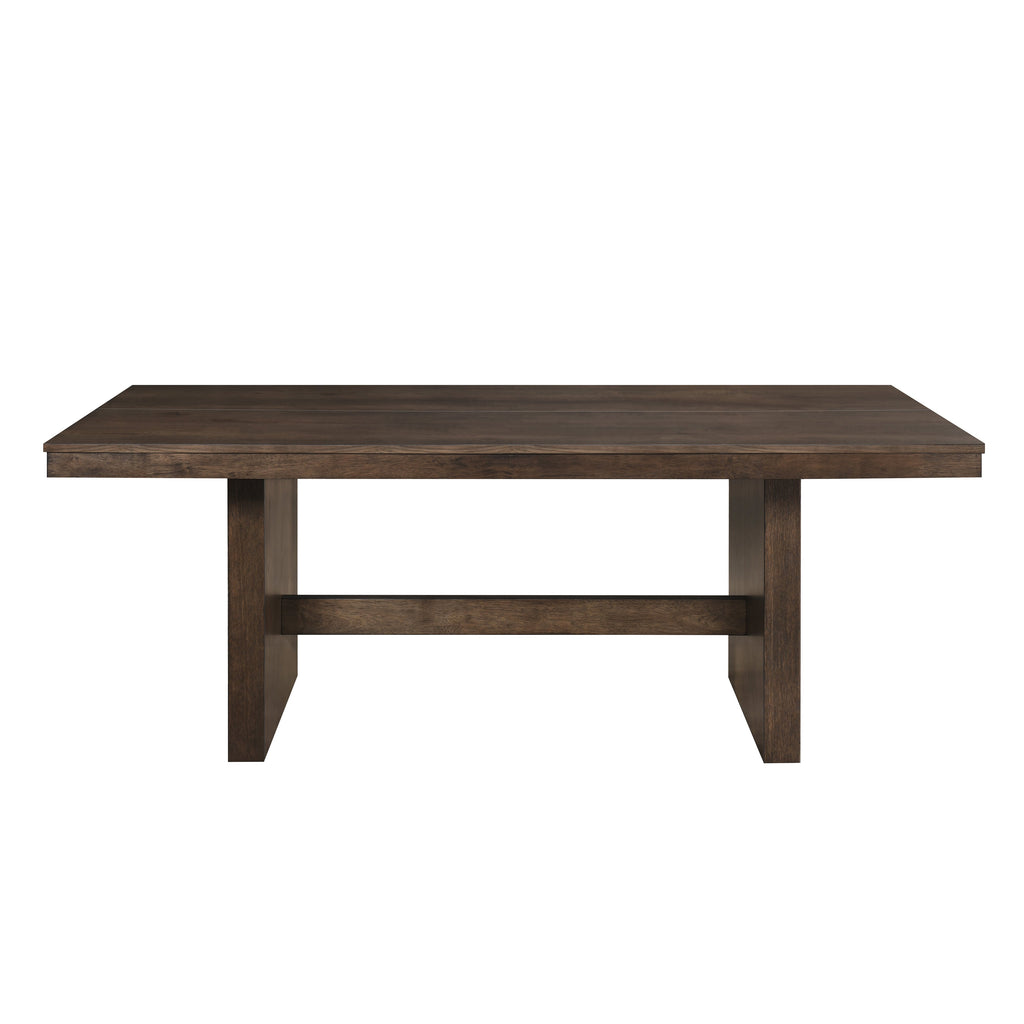 The Kody 79" Rectangle Dining Table is a versatile centerpiece for any dining space, expertly constructed with solid rubberwood, engineered woods, and real oak veneers to ensure lasting durability and stability. Its rich dark walnut brown finish brings out the natural grain patterns, adding a layer of timeless elegance. The table’s modern rectangular design, with subtly contoured edges, strikes the perfect balance between classic charm and contemporary style. Spacious enough to seat six comfortably, it's perfect for family dinners, gatherings, or special occasions, offering both functionality and style in one sophisticated package.