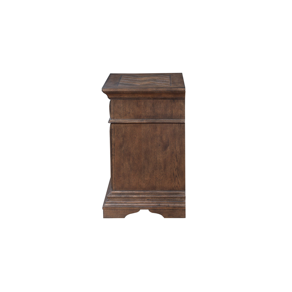 - Style that makes a Statement: This beautiful wood nightstand integrates substantial crown moldings, carved bracket feet and convex pilaster moldings, all highlighting the signature herringbone wood inlays that are the hallmark of the Mar Vista Collection.