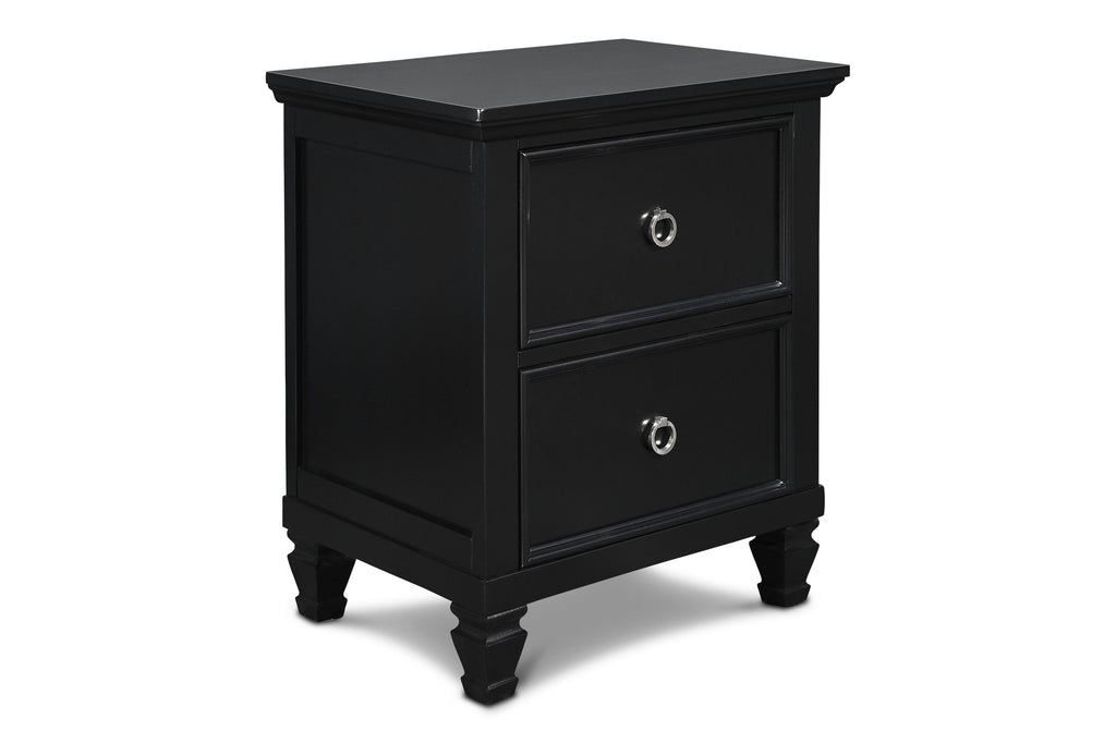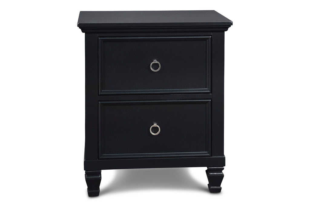 The Tamarack 2 Drawer Wood Nightstand in Black combines durability with elegance. Built with solid poplar, basswood veneers, and eco-friendly manufactured wood, this nightstand ensures strength and long-lasting durability. Its versatile transitional design seamlessly blends contemporary clean lines with classic paneled detailing, creating a perfect harmony of modern and traditional aesthetics. The sleek black finish adds a touch of sophistication and modernity, enhancing the overall aesthetic and complementing any decor style. Quality drawer construction ensures smooth operation with side-mounted glides and the durability of English dovetail joinery on both the front and back, guaranteeing long-lasting use. Fully finished drawers provide snag-free storage, while the felt-lined top drawer protects your delicates. This nightstand is an excellent addition to any bedroom, offering both style and functionality.