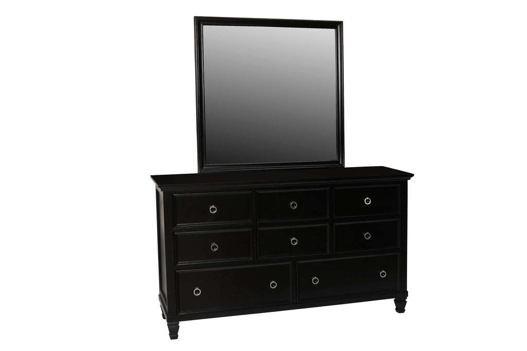 The Tamarack Mirror in Black offers a perfect blend of durability and style. Crafted with a combination of solid poplar, basswood veneers, and eco-friendly manufactured wood, this mirror ensures strength and long-lasting durability. Its versatile transitional design combines contemporary clean lines with classic paneled detailing, seamlessly blending modern and traditional aesthetics. The sleek black finish adds a touch of sophistication and modernity, enhancing the overall aesthetic and complementing any decor style. Experience a true and clear reflection with our premium low-distortion glass mirror, providing both function and elegance.