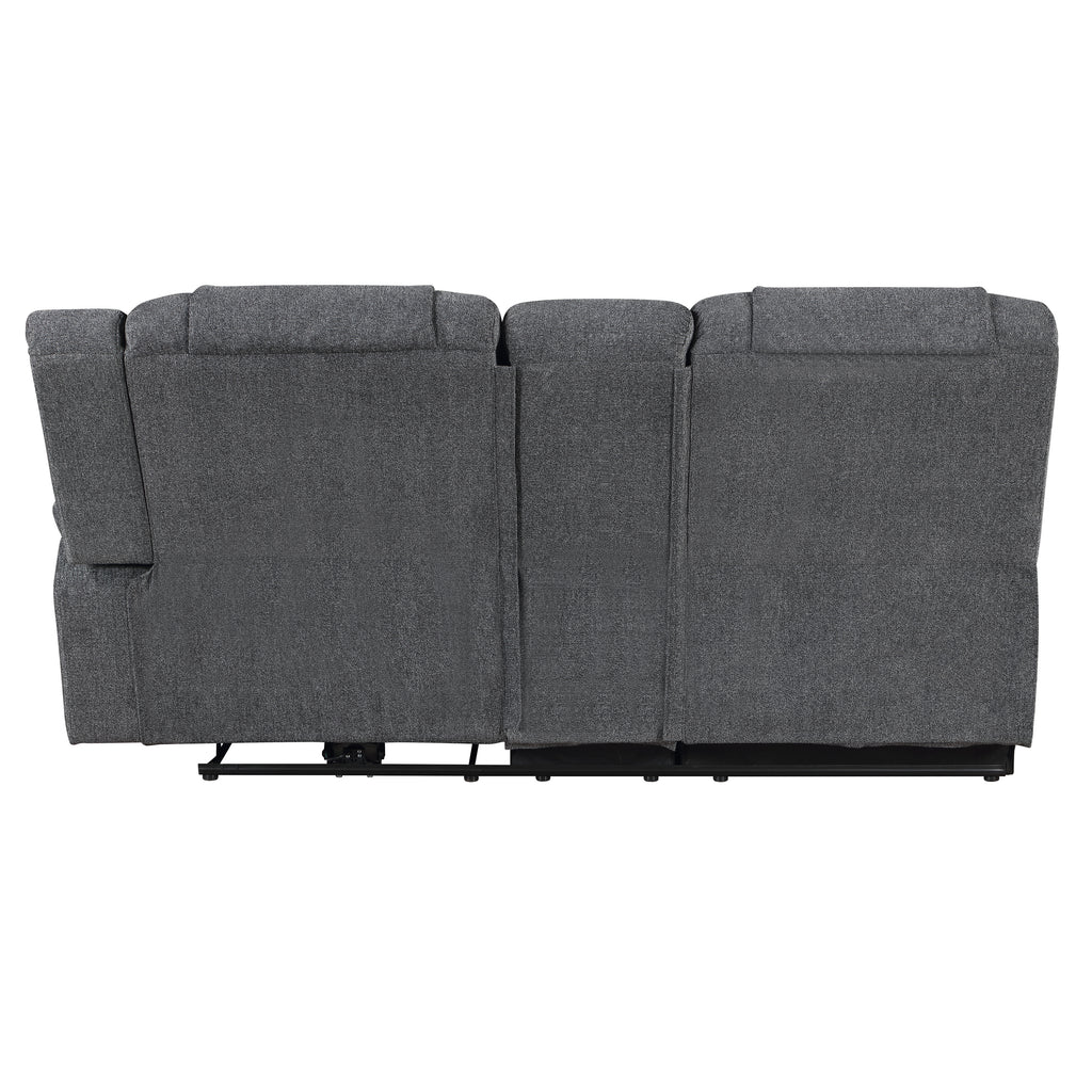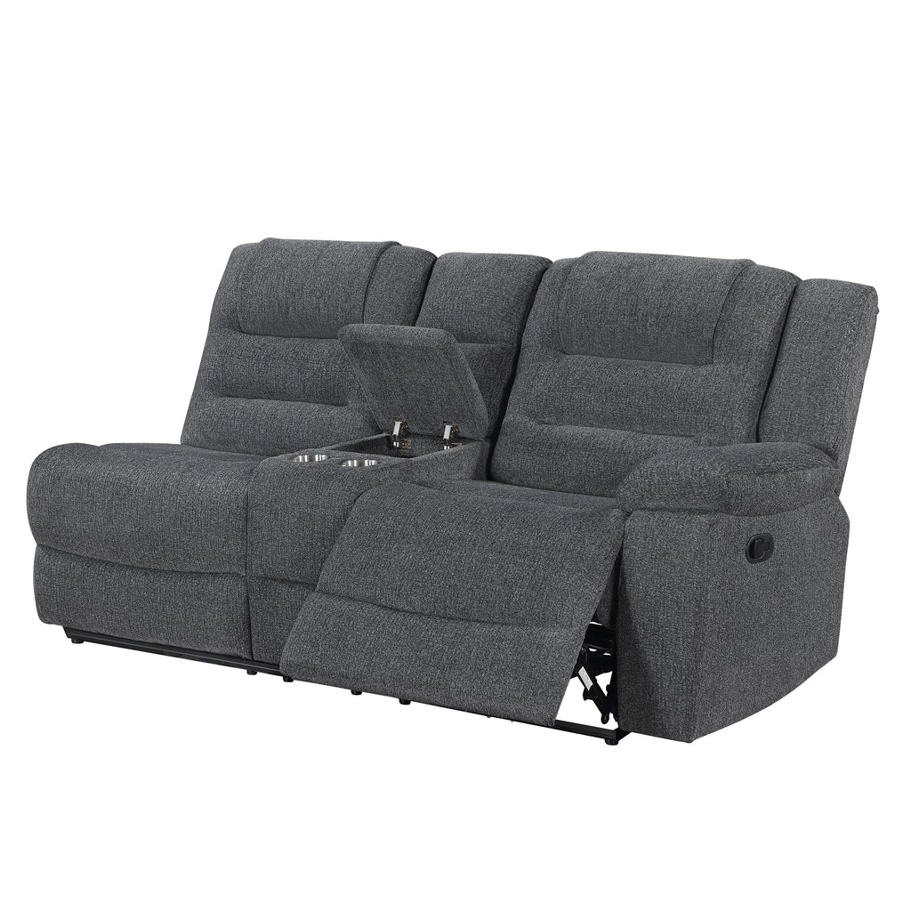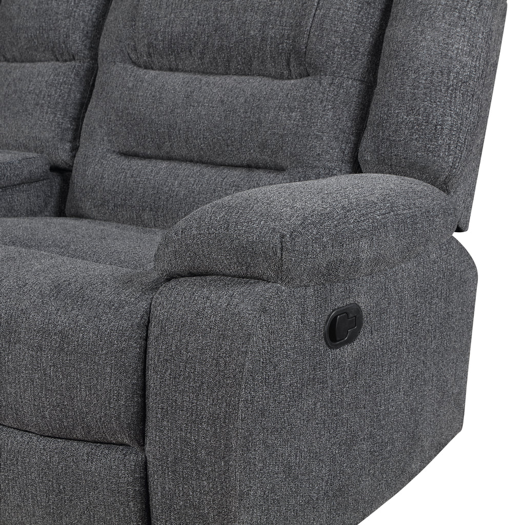 The Redondo 3-Piece Motion Sectional combines comfort and function with soft, easy-care dark gray fabric over a sturdy hardwood and plywood frame. Designed in an L-shape with three reclining footrests, it’s perfect for relaxing or entertaining. Plush cushions, resilient springs, and built-in cupholders, storage consoles, and USB ports provide comfort and convenience. A cozy, stylish centerpiece for any living space.