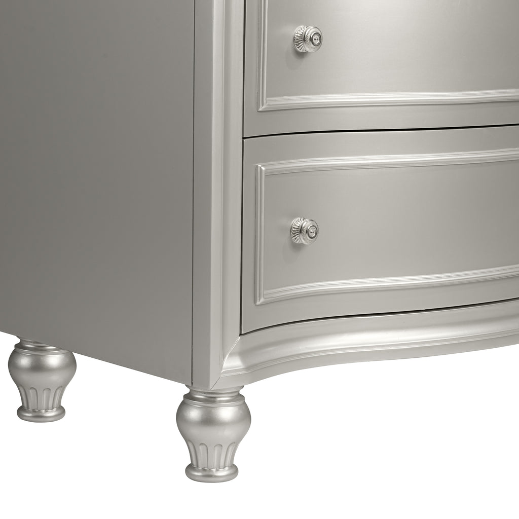 • Glamorous Matte Silver Finish: This luxurious finish not only adds a radiant touch of elegance but also beautifully complements the mirrored panels and shimmering silver drawer pulls, creating a refined and sophisticated look.