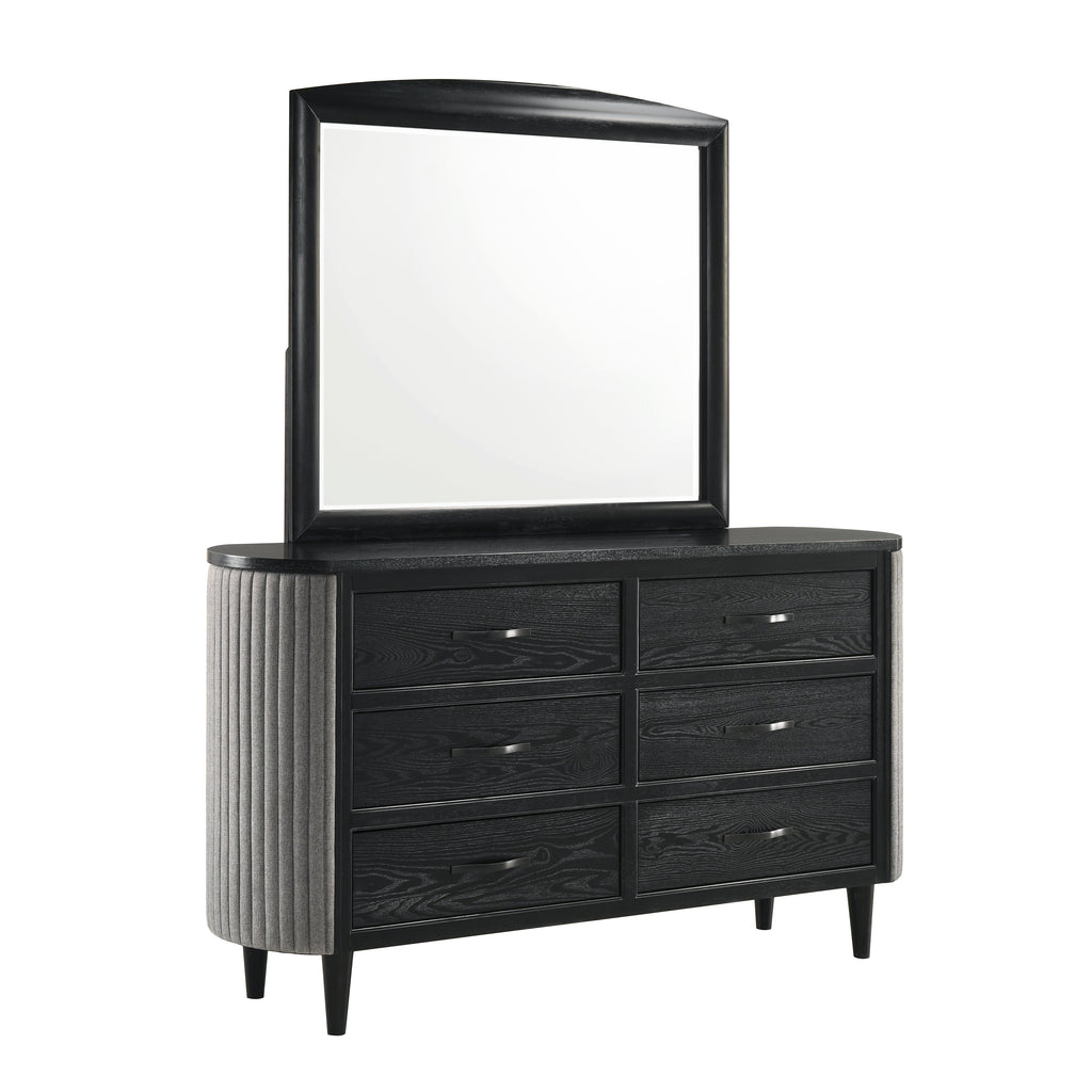 The Skyline Mirror in Onyx merges modern style with craftsmanship, making it a sleek addition to your space. Framed in solid Rubberwood, engineered woods, and Ash Wood veneers, it balances durability and contemporary design. The Onyx Black finish with gray glazing enhances the wood grain for a luxurious look. Encased in this sleek frame, the clear, low-distortion glass provides stunning clarity, delivering true-to-life reflections that brighten your room. A bold, stylish, and functional accent.