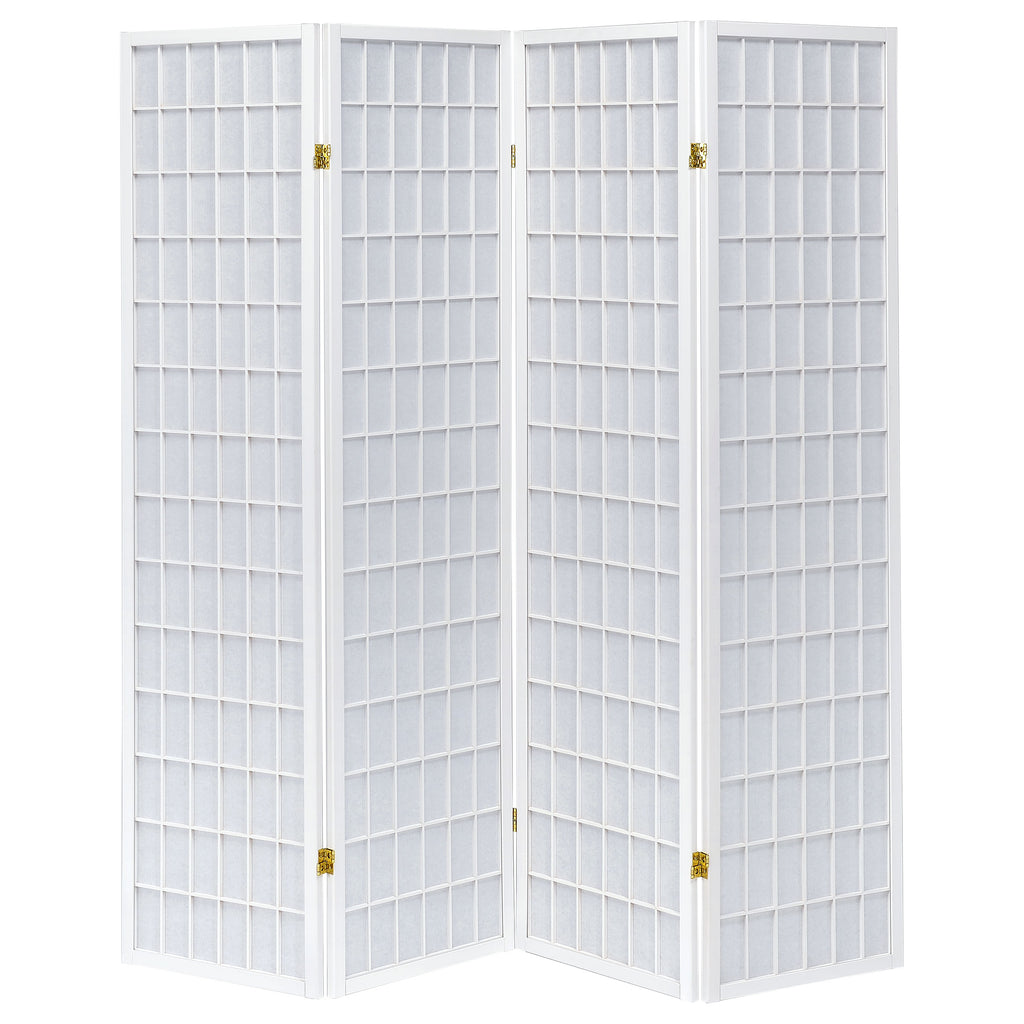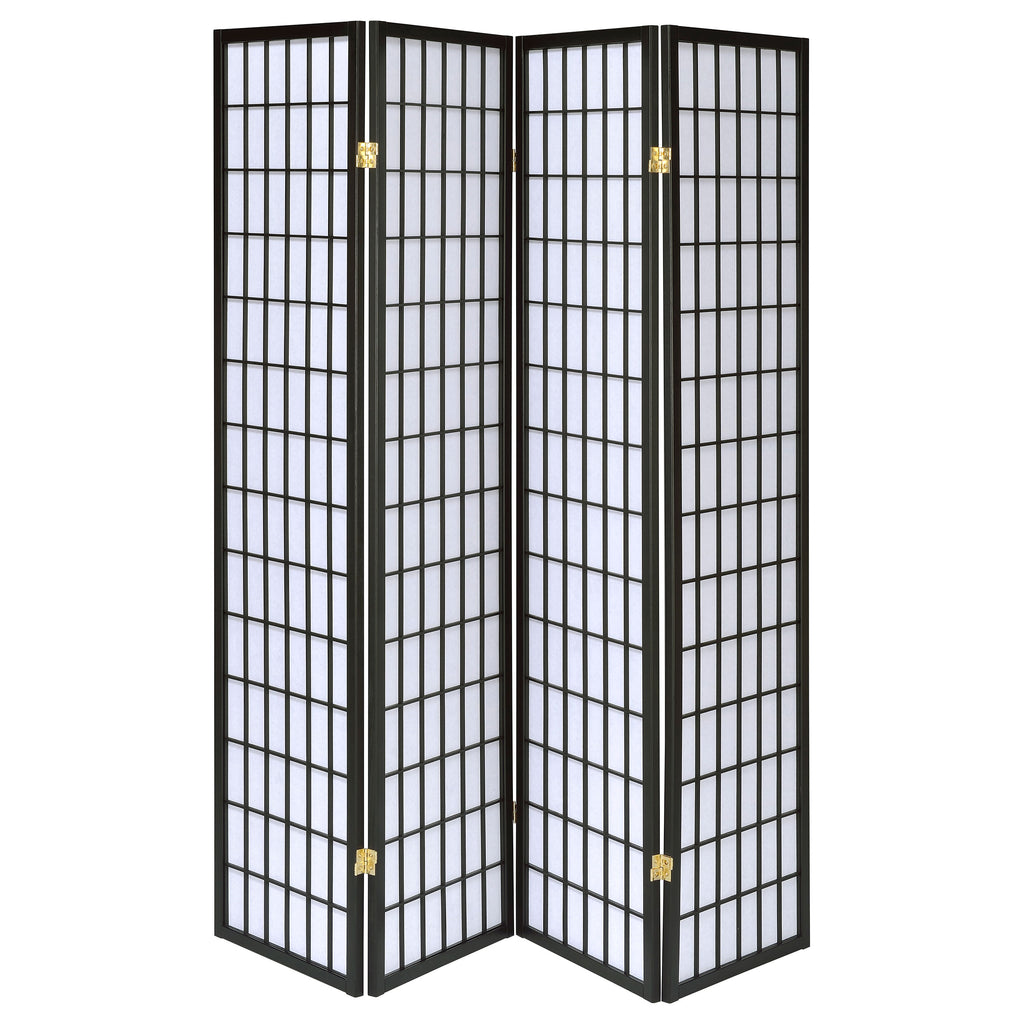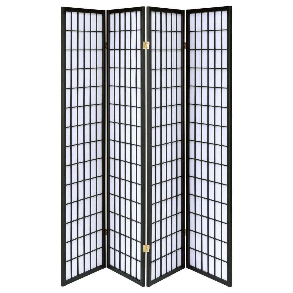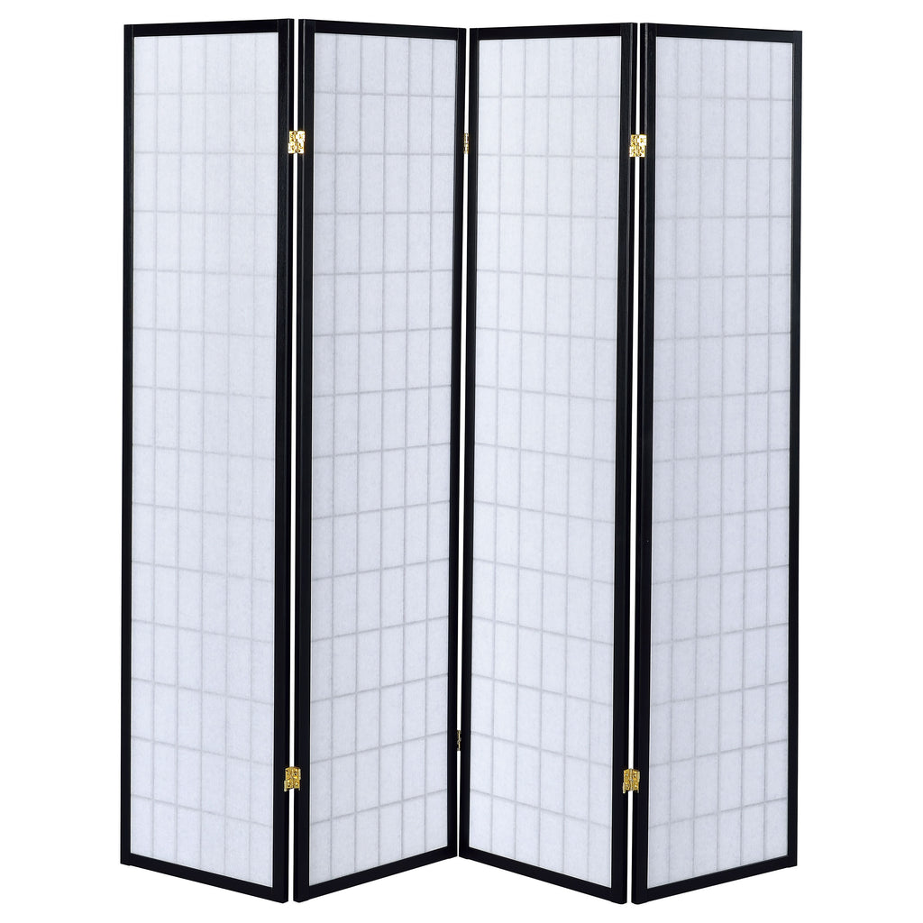 This four-panel folding screen provides a versatile solution for privacy and style. Designed with a linear grid motif, it adds a clean, contemporary touch to any space. The hinged construction allows panels to expand fully for maximum coverage or fold inward for a decorative accent. Built with a durable rubberwood frame and lightweight fabric panels, it creates an elegant partition for living rooms, bedrooms, or shared spaces while maintaining an airy, open feel. Key Features: • Four-panel folding room divider in black with linear grid design • White fabric panels create a soft contrast against the wood frame • Panels fold flat or expand to provide adjustable room separation • Durable rubberwood frame ensures long-lasting support and strength • Lightweight construction makes it easy to reposition as needed • Adds privacy and function in living rooms, bedrooms, or shared areas