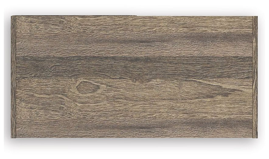 • Weathered brown finish over replicated oak grain with authentic touch